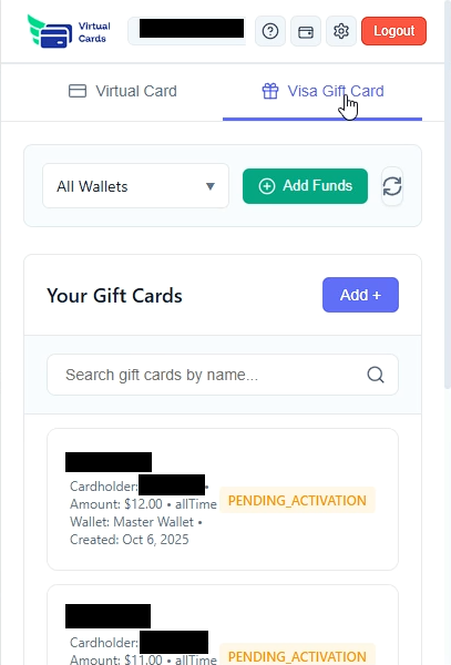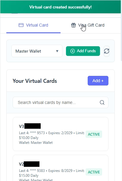 Q: Can I create multiple virtual cards? A: Yes! You can create as many virtual and gift cards as you need, as long as you have sufficient wallet balance.