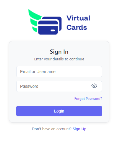 ✓ LOGIN SUCCESSFUL! You're now ready to create and manage your virtual cards.